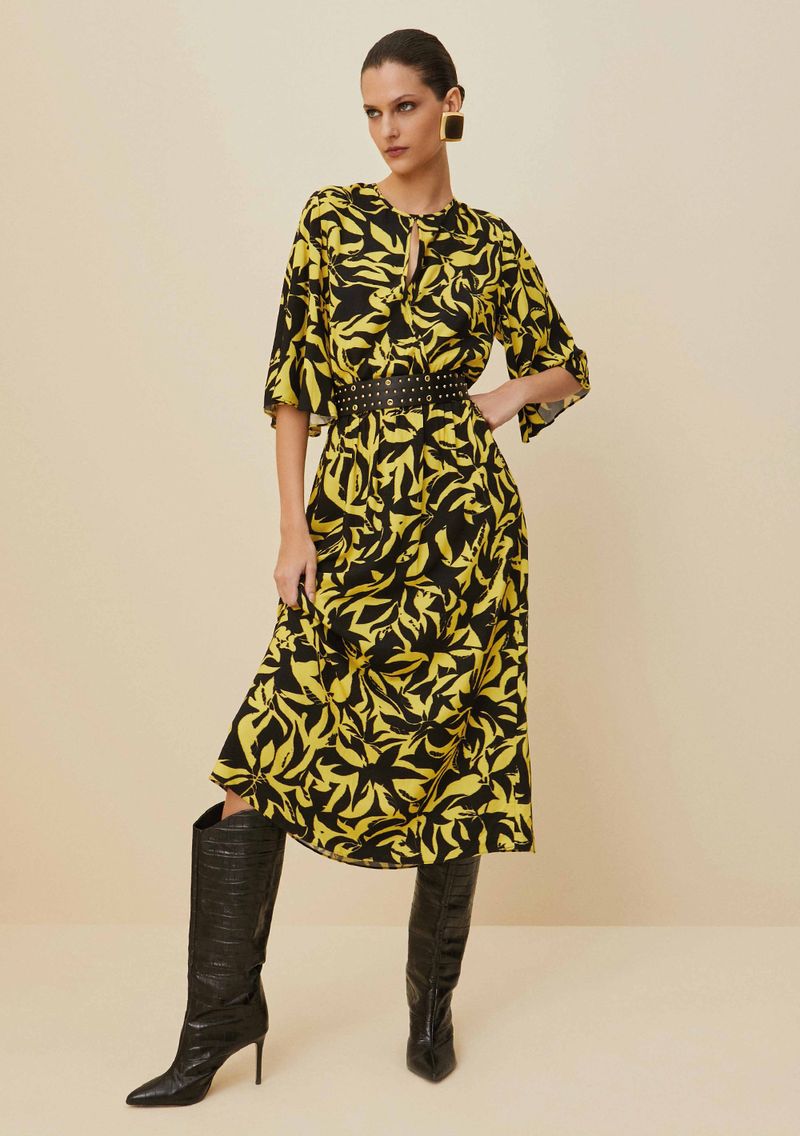 OUTLETLinhasColeçõesRoupasVestidosVestidosVestido Morena Rosa Midi Decote Transpassado Com Faixa Amarelo