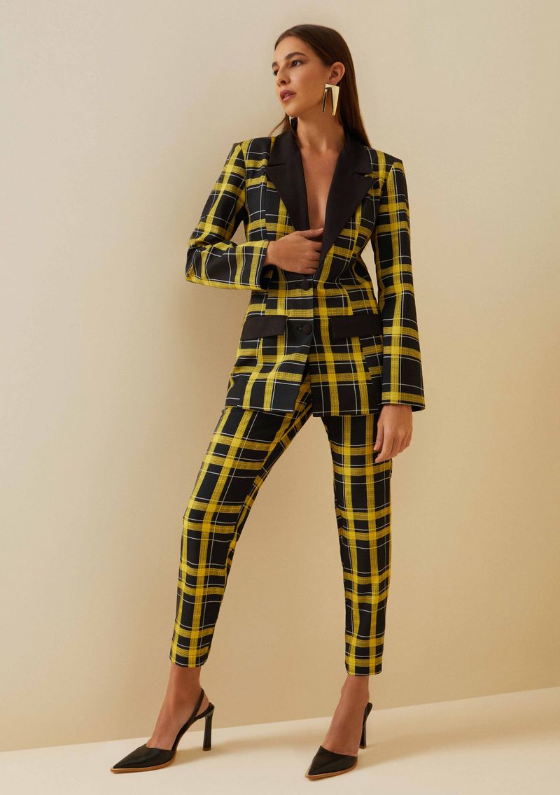 OUTLETLinhasColeçõesRoupasCalçasCalçasCalca Morena Rosa Slim Alfaiataria Cós Alto Detalhe Cós Amarelo