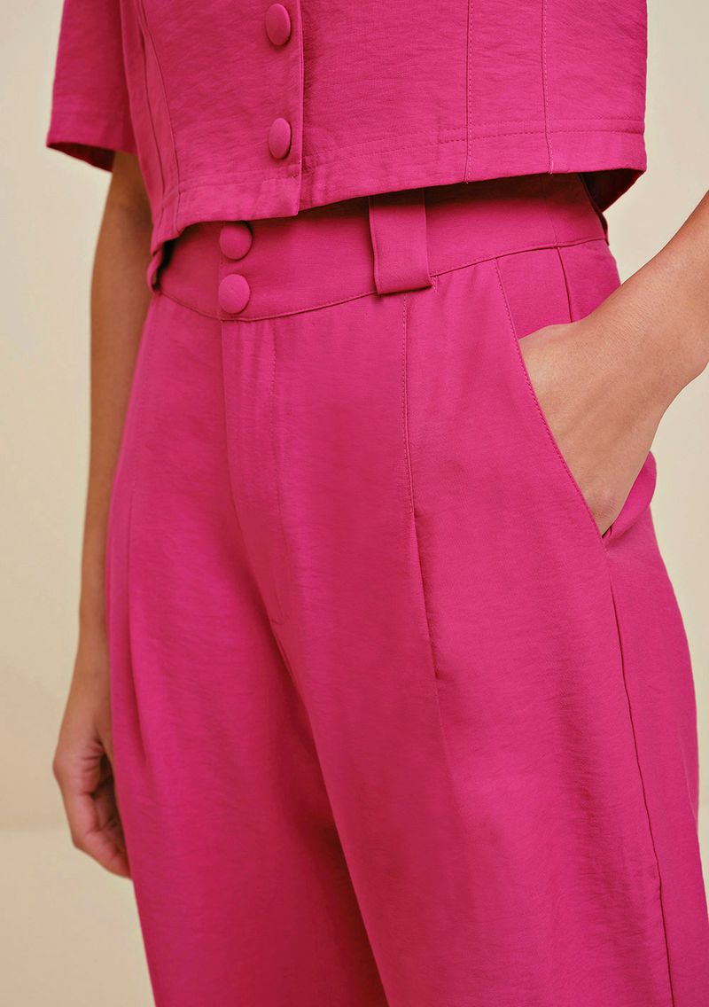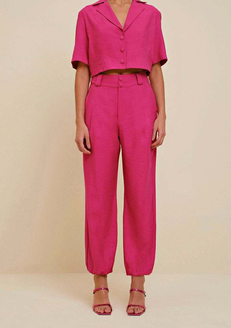 Calça Morena Rosa Jogger Cós Alto Bolso Faca Pink