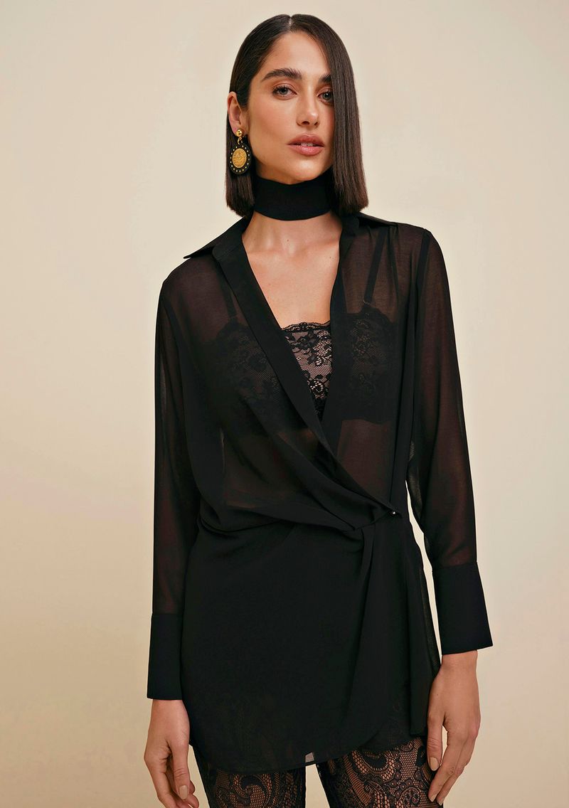 OUTLETLinhasColeçõesRoupasCamisasCamisasCamisa Morena Rosa Manga Longa Com Top Preto