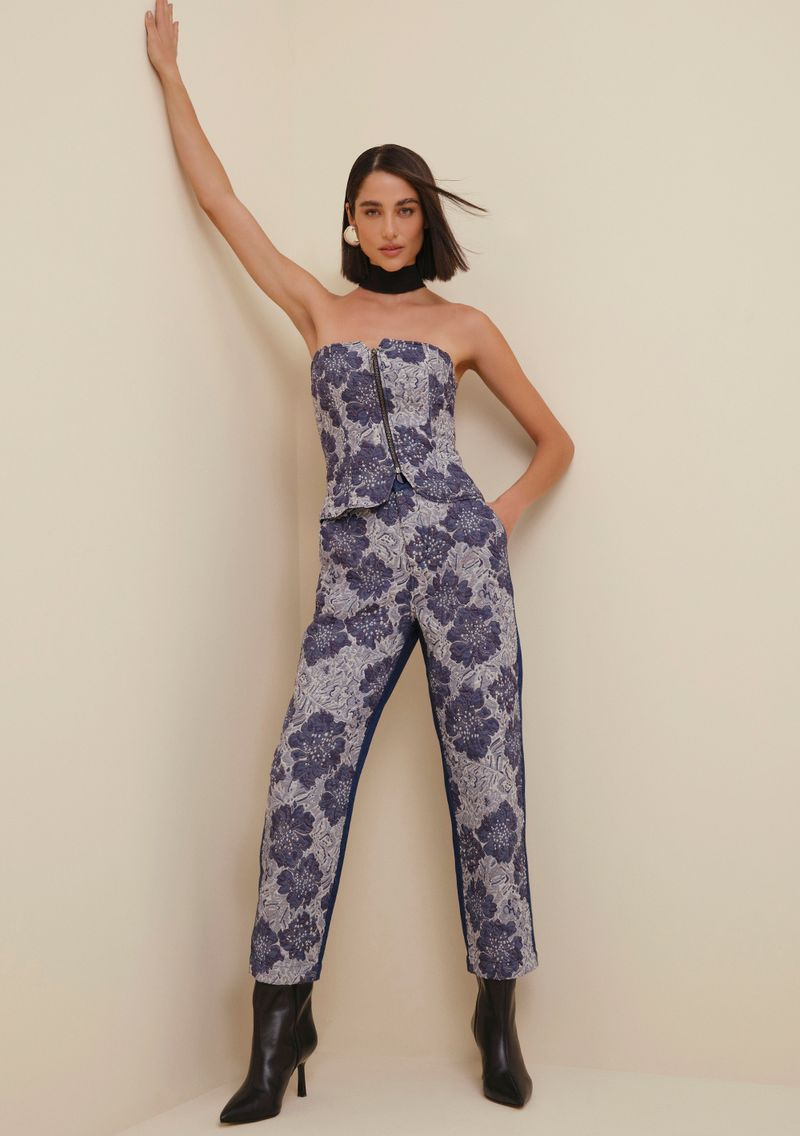 OUTLETLinhasColeçõesJeansJeansCalçasCalça Morena Rosa Reta Renata Cós Alto Composê De Tecidos Azul Marinho