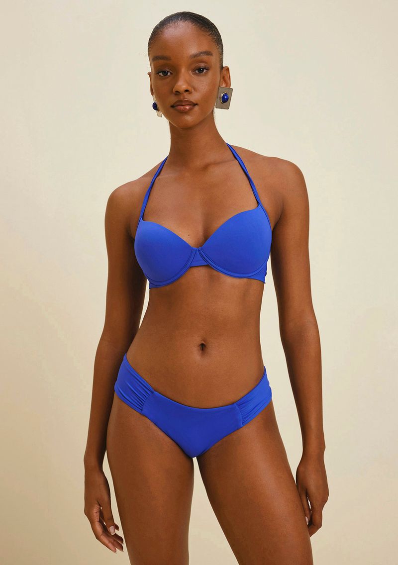 Biquíni Morena Rosa Meia Taça Com Drapeado Azul