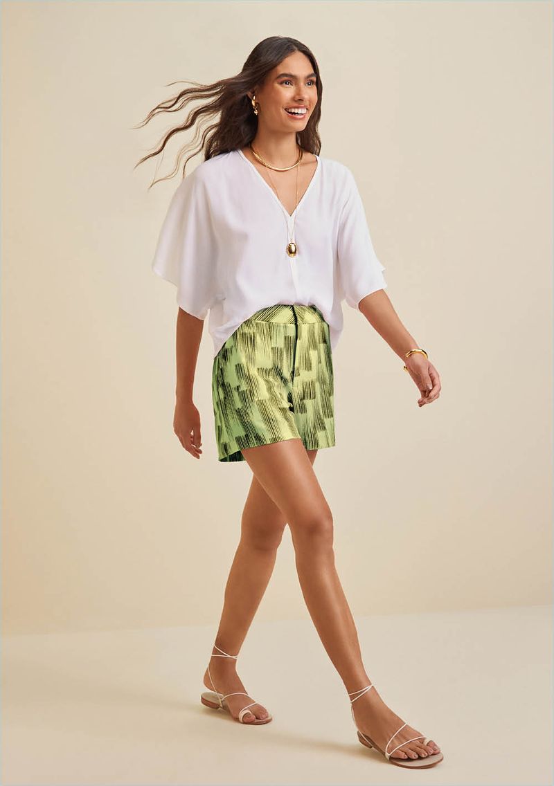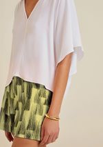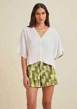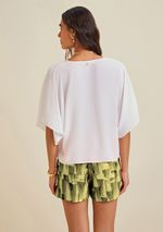Blusa Morena Rosa Decote V Manga Morcego Detalhe Viés Off White