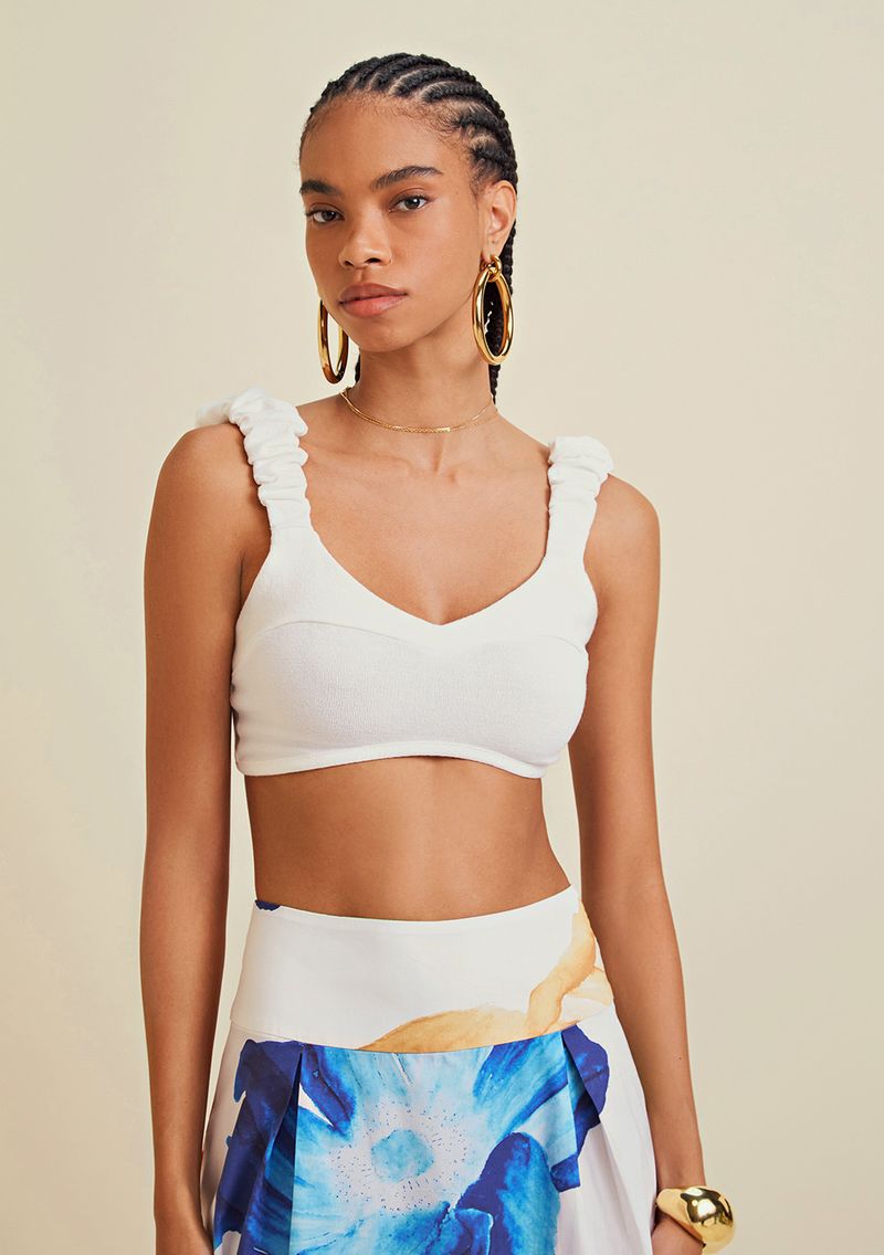 OUTLETLinhasColeçõesRoupasBlusasBlusasBlusa Morena Rosa Decote Redondo Alça Tricot Lilas