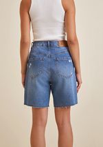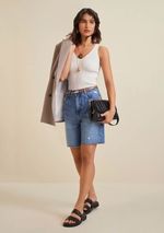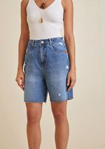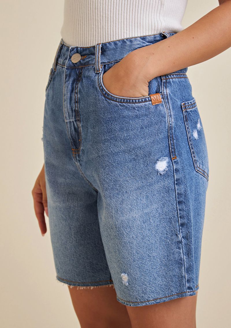 Bermuda Morena Rosa Reta Barra Refilada Jeans