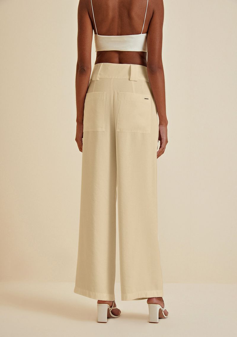 Calça Morena Rosa Alfaiataria Cós Alto Com Botão Cru
