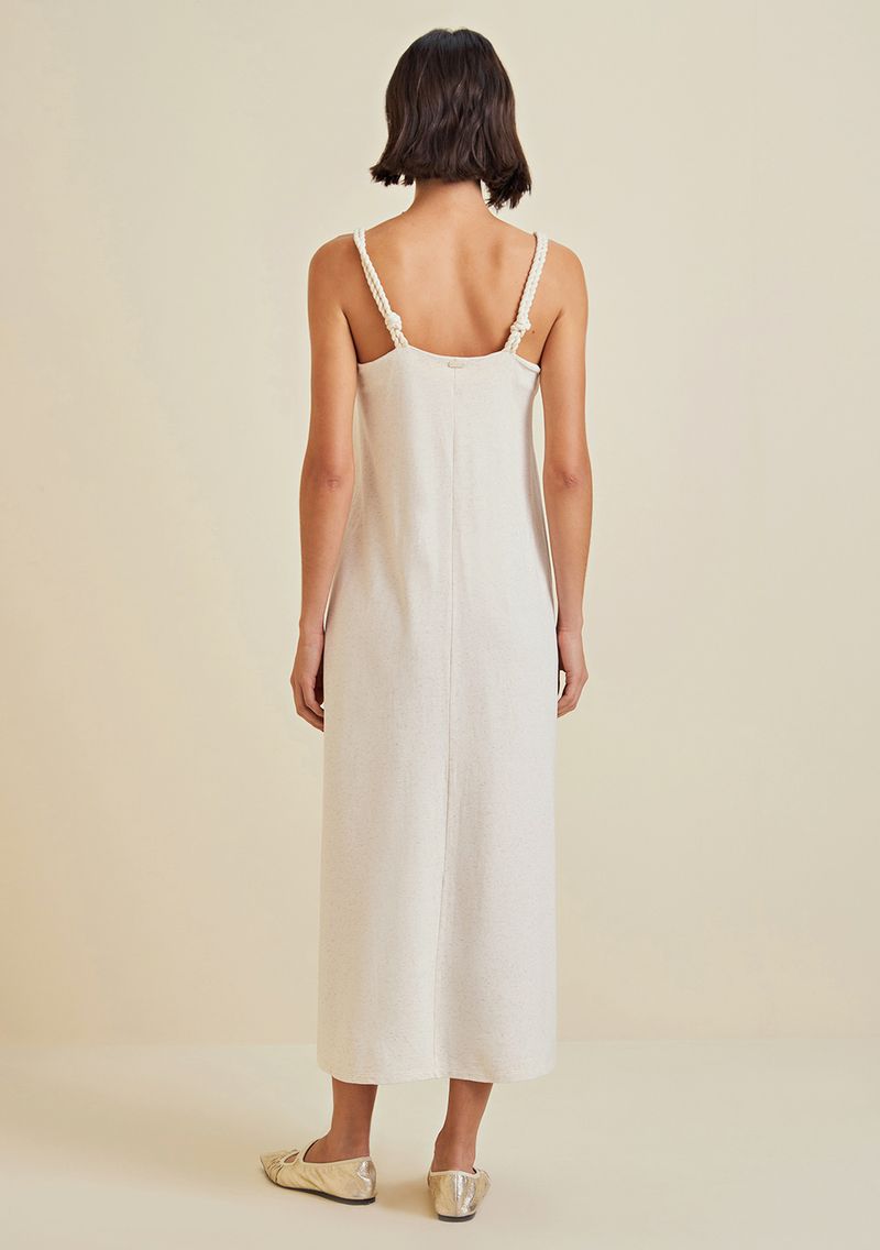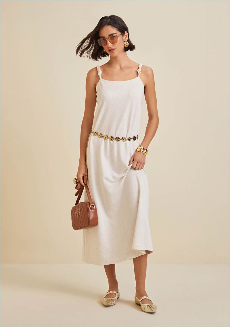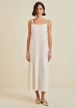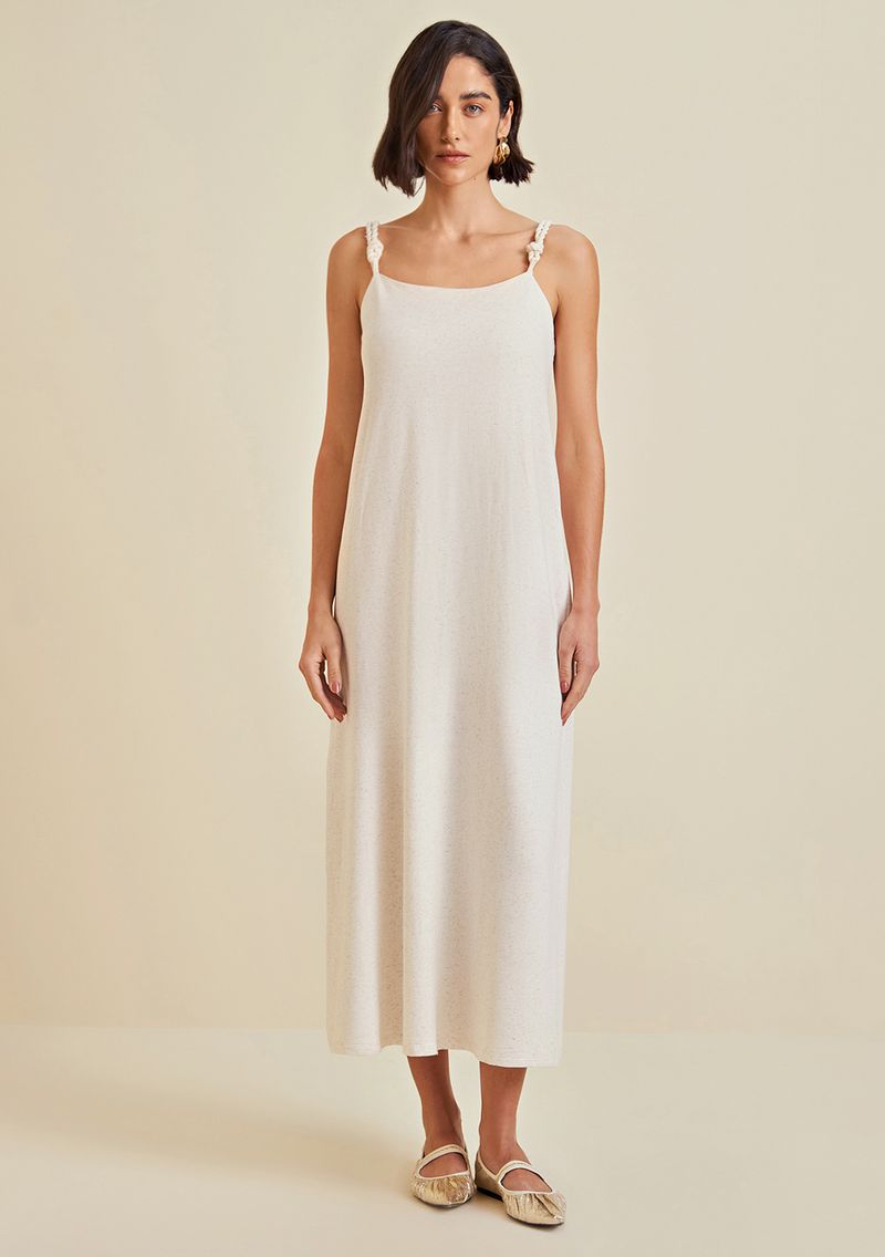 Vestido Morena Rosa Solto Decote Reto Com Alça Midi Cru