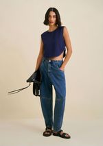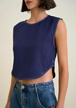 OUTLETLinhasColeçõesRoupasBlusasBlusasBlusa Morena Rosa Decote Redondo Sem Manga Com Botão Azul Marinho