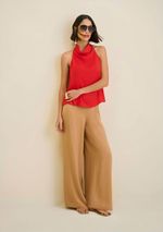 OUTLETLinhasColeçõesRoupasCalçasCalçasCalça Morena Rosa Reta Cós Alto Com Cinto Marrom