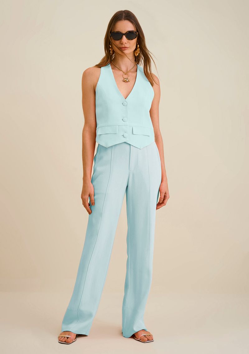 OUTLETLinhasColeçõesRoupasCalçasCalçasCalça Morena Rosa Reta Cós Alto Com Bolso Azul
