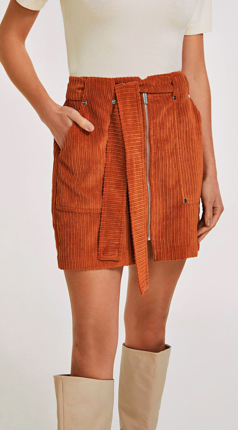 OUTLETLinhasColeçõesRoupasSaiasSaiasSaia Morena Rosa Mini Reta Com Faixa Marrom