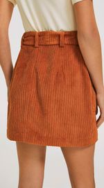 Saia Morena Rosa Mini Reta Com Faixa Marrom