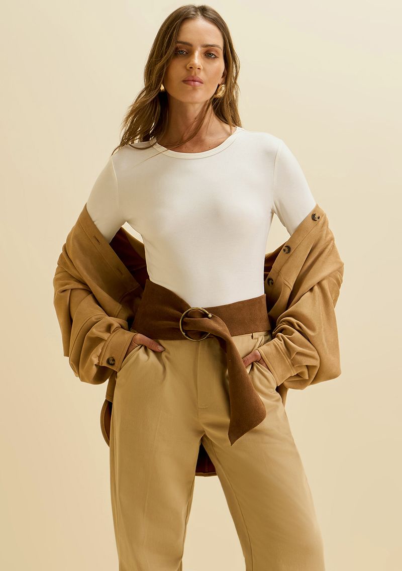 Envolva-se no charme da Blusa Morena Rosa Ajustada Decote Careca Manga Longa Padrão Off White, uma peça que exala sofisticação e conforto. Feita com viscose e elastano, ela abraça seu corpo com suavidade, destacando a feminilidade e proporcionando liberdade de movimento. Ideal para ocasiões casuais, sua cor off white permite combinações versáteis, seja com uma calça skinny para um look elegante ou uma calça cargo para um toque despojado. Inspirada na coleção 'Ela é Carioca!', esta blusa captura a essência vibrante e descontraída do verão carioca. As consumidoras modernas e confiantes sentirão a energia revigorante e a elegância inigualável que esta peça oferece. Vista-se de autoestima e destaque-se em qualquer ocasião. *Os acessórios não acompanham a peça*
