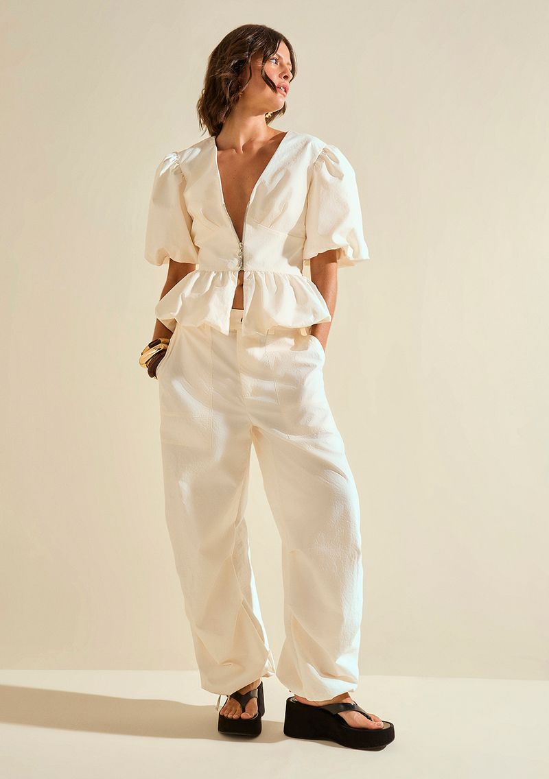 OUTLETLinhasColeçõesRoupasBlusasBlusasBlusa Morena Rosa Ajustada Decote V Manga Curta Padrão Off White