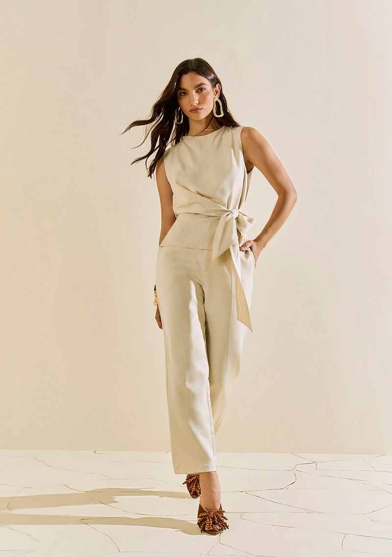 LinhasColeçõesRoupasBlusasBlusasBlusa Morena Rosa Ajustada Gola Alta Sem Manga Padrão Bege