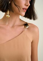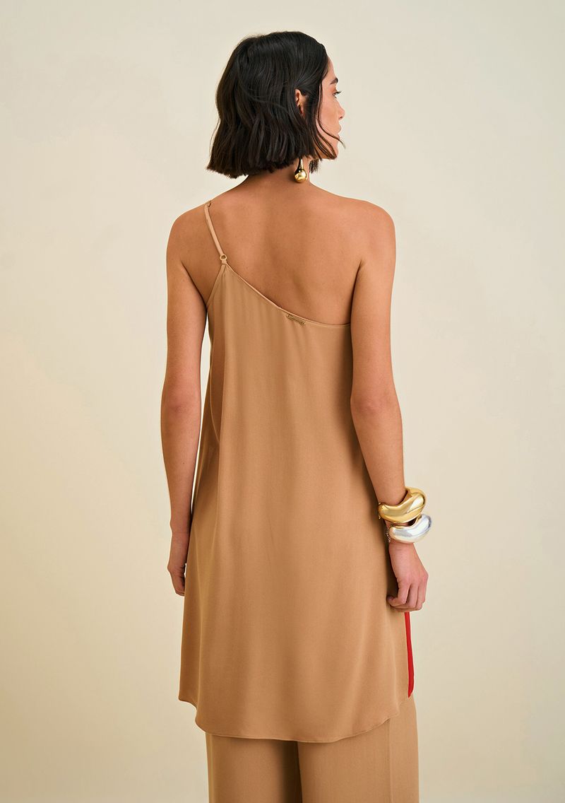 OUTLETLinhasColeçõesRoupasBlusasBlusasBlusa Morena Rosa Decote Assimétrico Alça Bicolor Bege