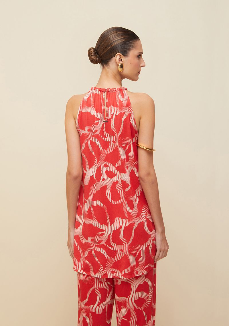 OUTLETLinhasColeçõesRoupasBlusasBlusasBlusa Morena Rosa Decote Redondo Cava Francesa Abertura Costas Vermelho