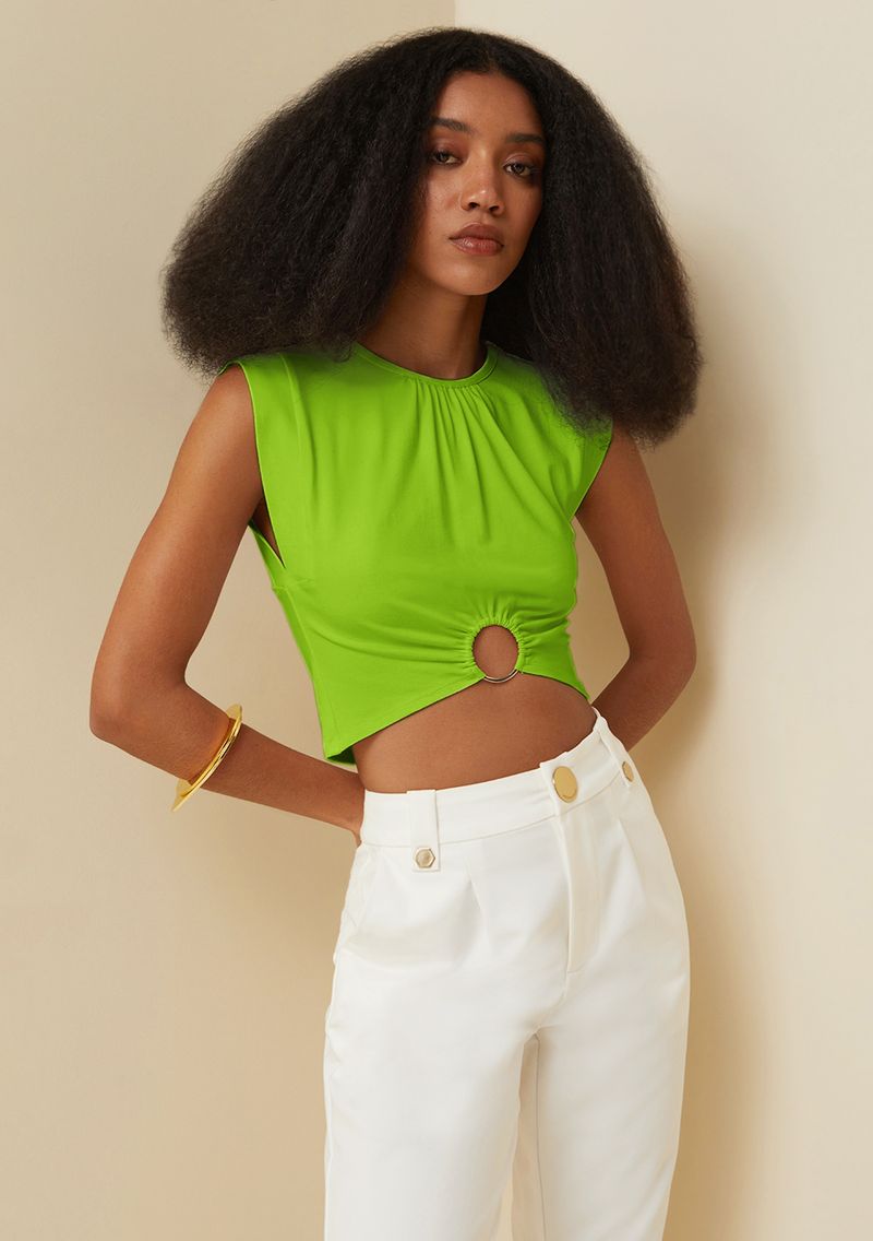 Blusa Morena Rosa Decote Redondo Cavada Detalhe Argola Verde