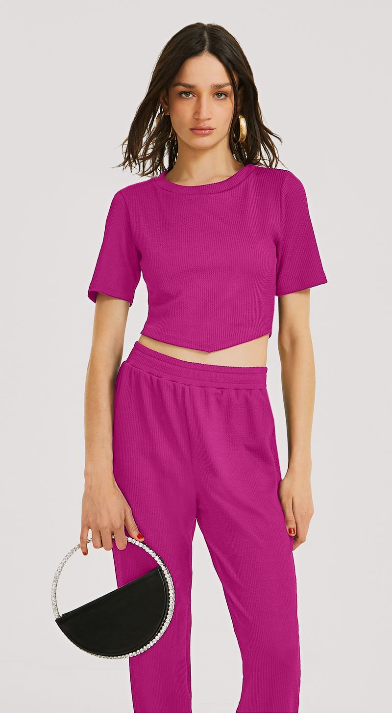 Blusa Morena Rosa Decote Redondo Manga Curta Detalhe Frente Rosa