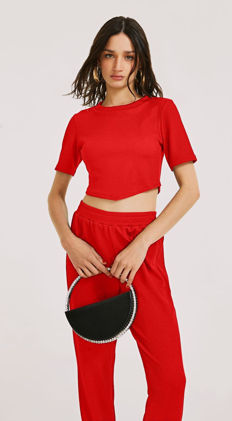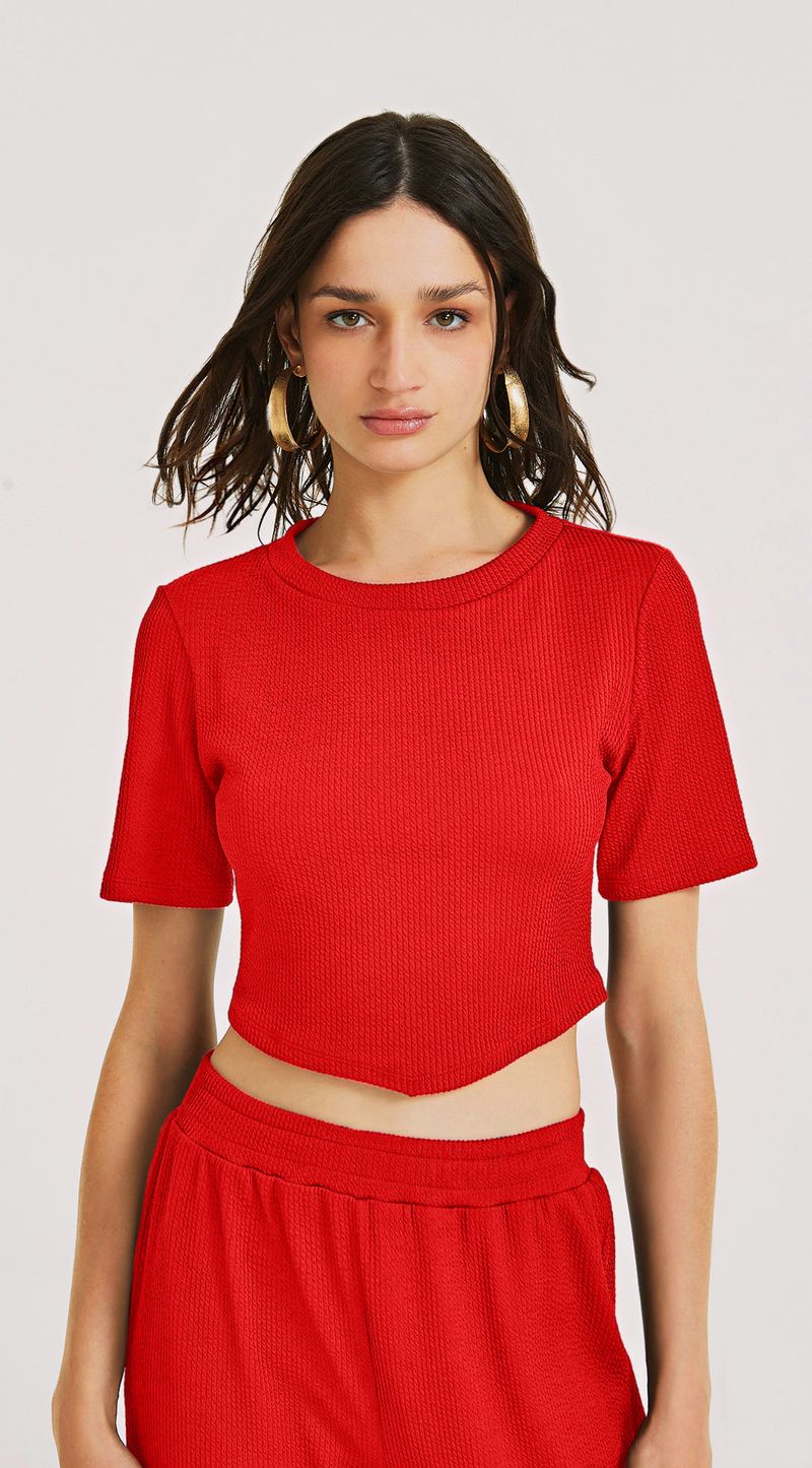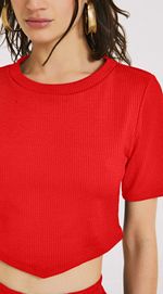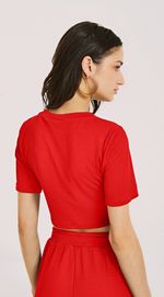 Blusa Morena Rosa Decote Redondo Manga Curta Detalhe Frente Vermelho