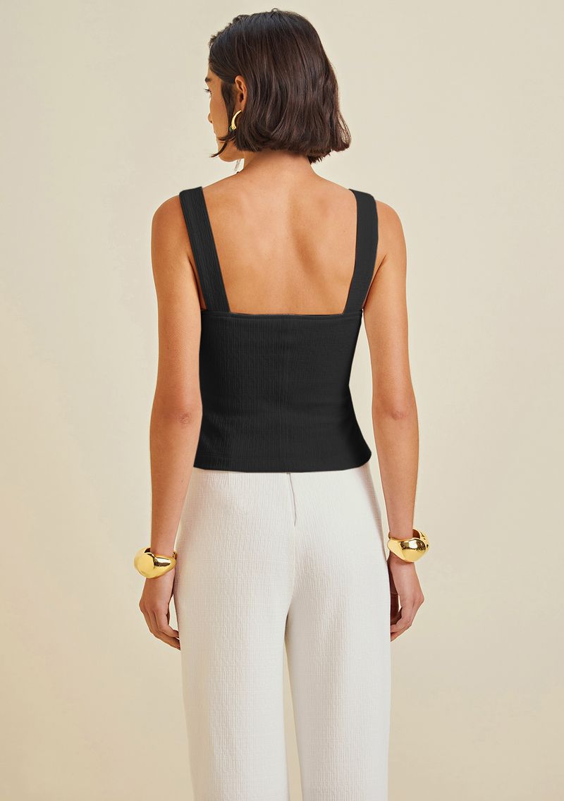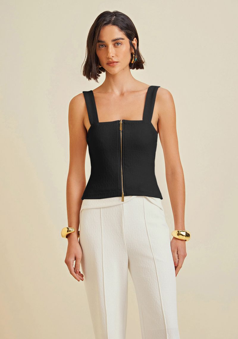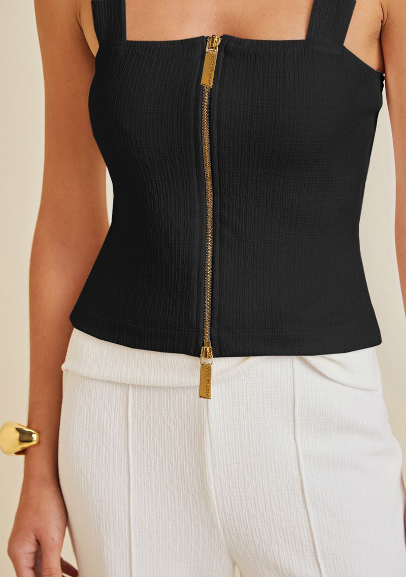 OUTLETLinhasColeçõesRoupasBlusasBlusasBlusa Morena Rosa Decote Reto Alça Detalhe Zíper Preto