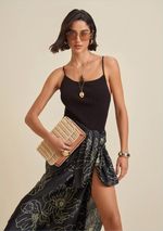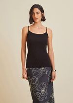 OUTLETLinhasColeçõesRoupasBlusasBlusasBlusa Morena Rosa Decote Reto Alça Tricot Preto