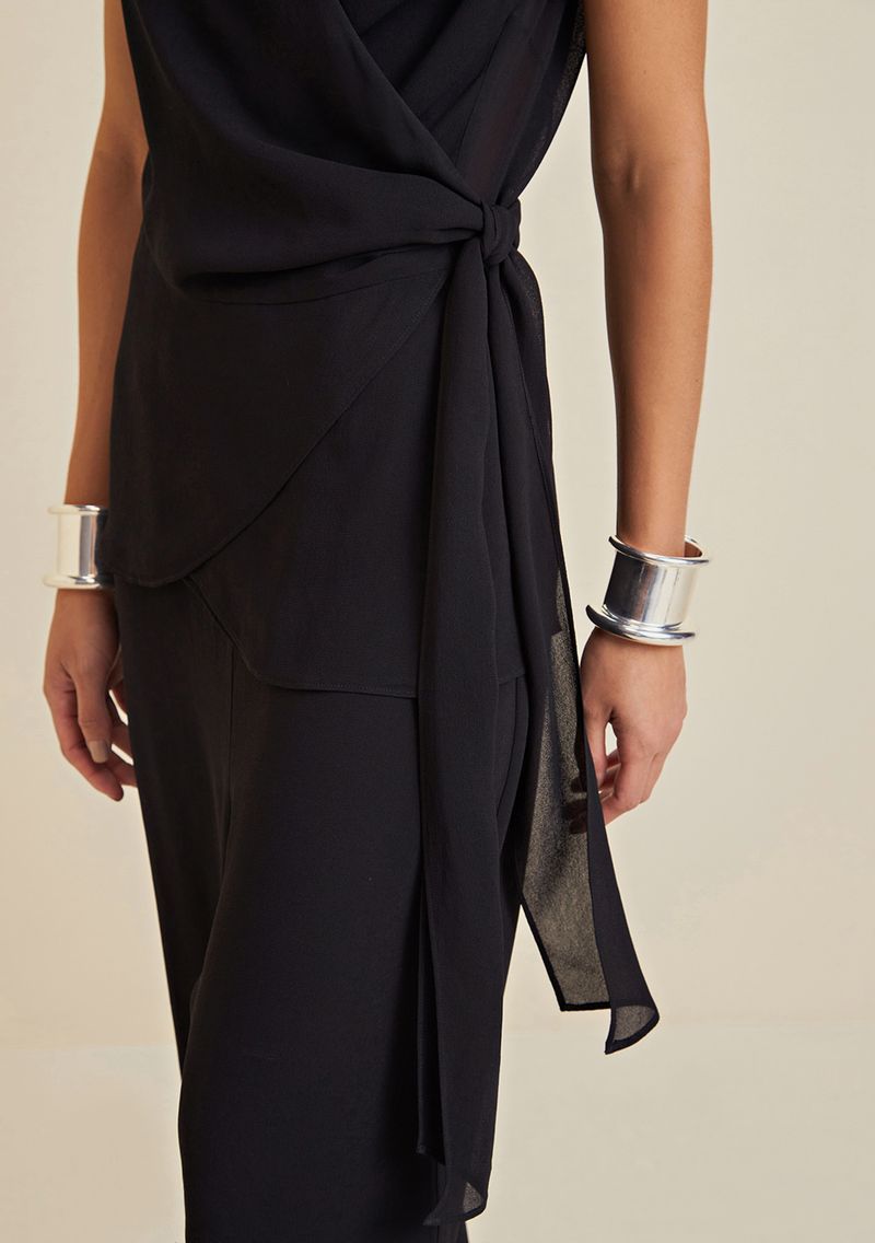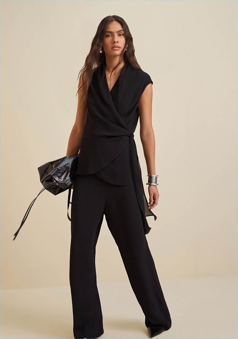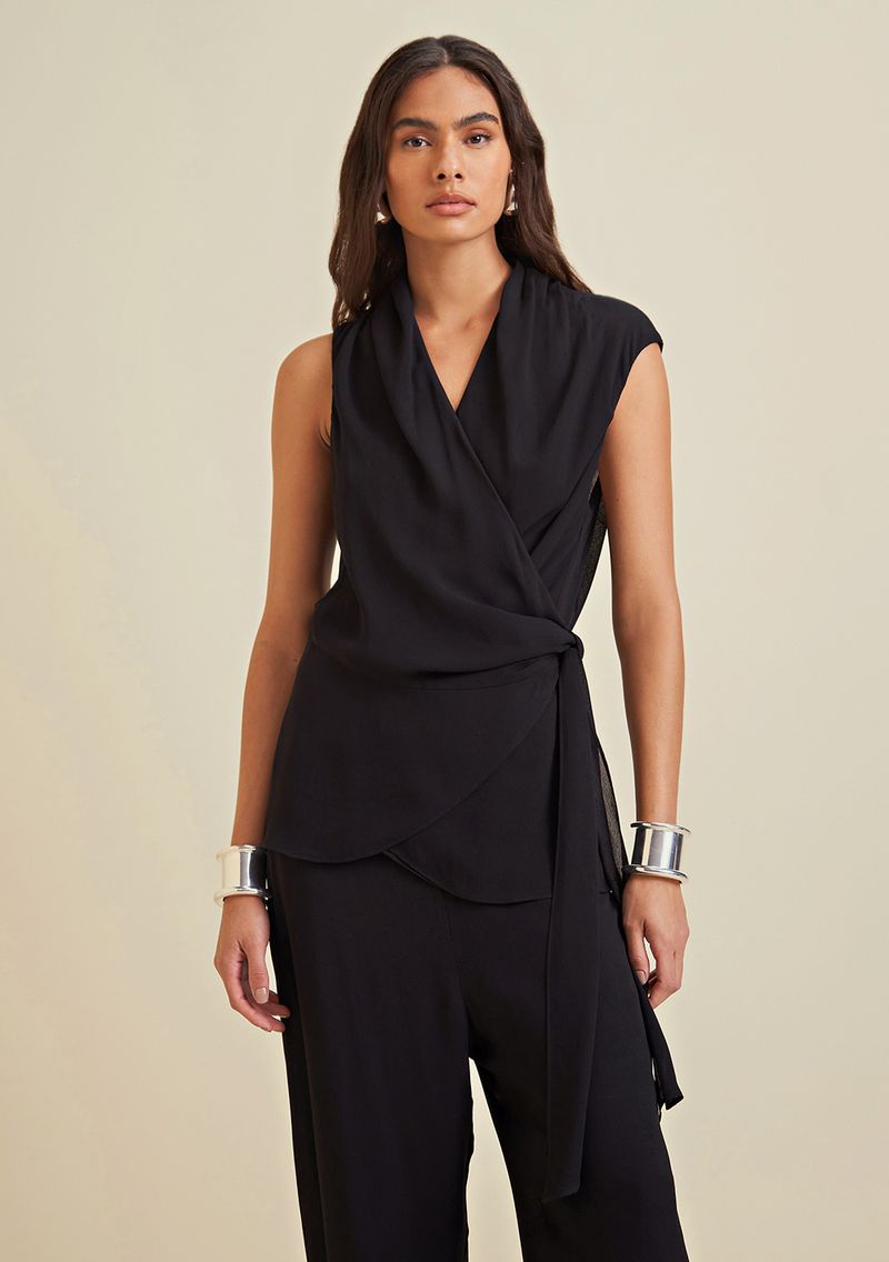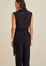 OUTLETLinhasColeçõesRoupasBlusasBlusasBlusa Morena Rosa Decote Transpassado Sem Manga Com Faixa Preto