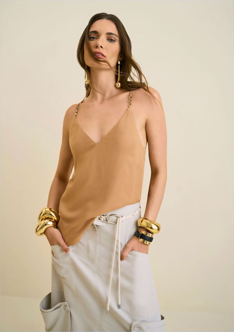 OUTLETLinhasColeçõesRoupasBlusasBlusasBlusa Morena Rosa Decote V Alça Detalhe Costas Marrom