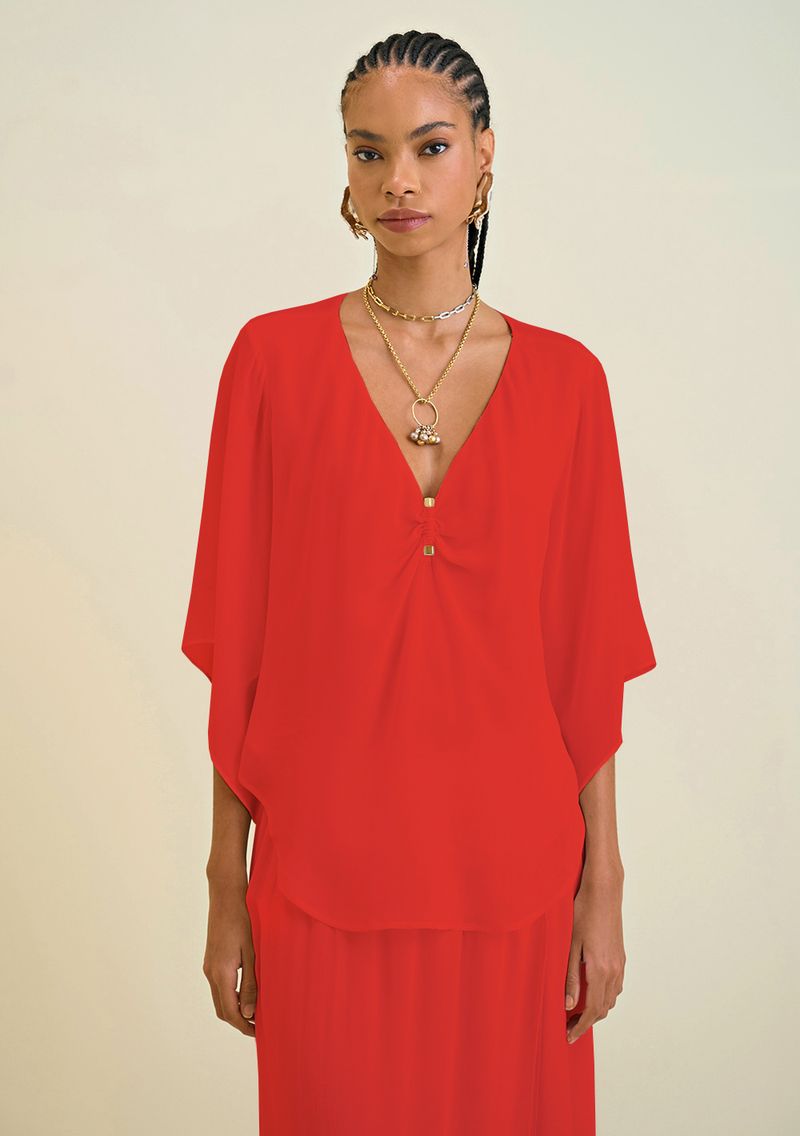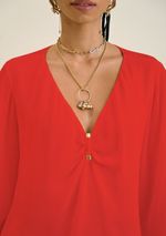 OUTLETLinhasColeçõesRoupasBlusasBlusasBlusa Morena Rosa Decote V Manga 3/4 Com Metal Vermelho