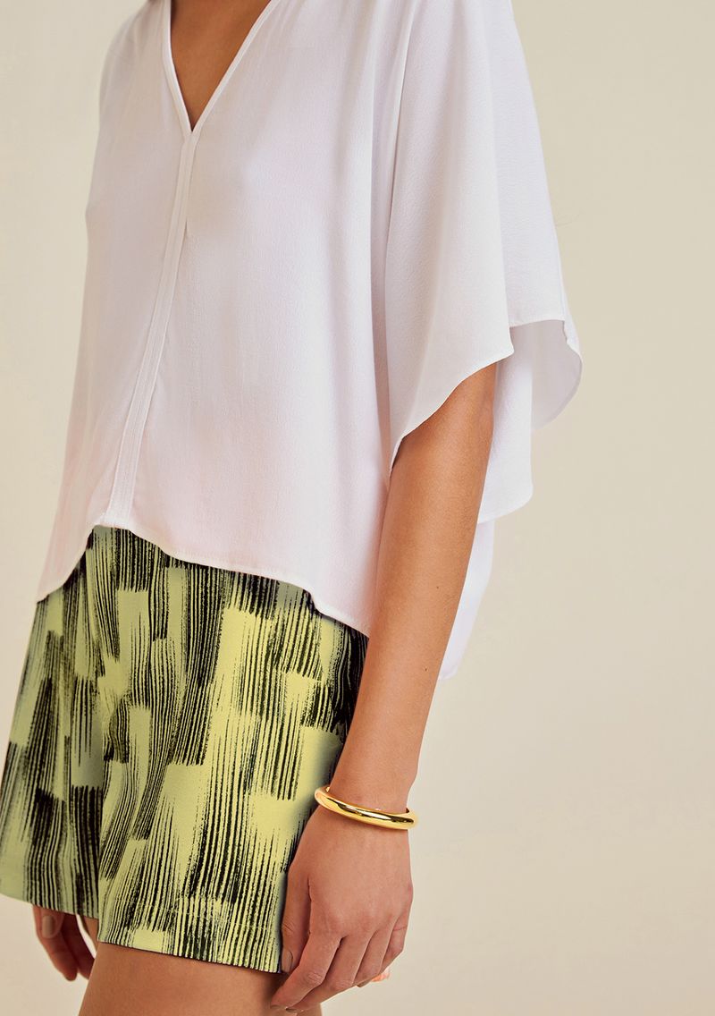 Blusa Morena Rosa Decote V Manga Morcego Detalhe Viés Off White