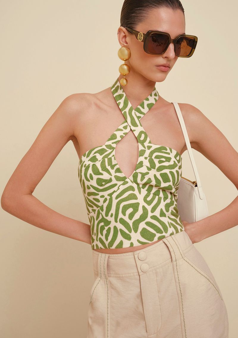 OUTLETLinhasColeçõesRoupasBlusasBlusasBlusa Morena Rosa Frente Única Alça Amarração Com Lastex Amarelo