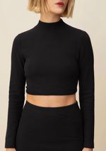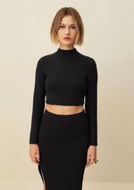 OUTLETLinhasColeçõesRoupasBlusasBlusasBlusa Morena Rosa Gola Alta Manga Longa Básica Preto