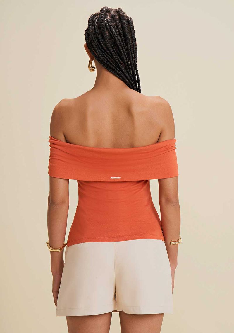 OUTLETLinhasColeçõesRoupasBlusasBlusasBlusa Morena Rosa Ombro A Ombro Sem Manga Com Franzido Laranja