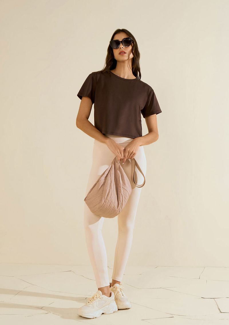 LinhasFitnessBlusasBlusa Morena Rosa Solta Decote Careca Manga Curta Padrão Marrom