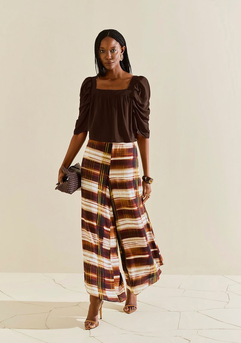 Blusa Morena Rosa Solta Decote Reto Manga Curta Cropped Marrom