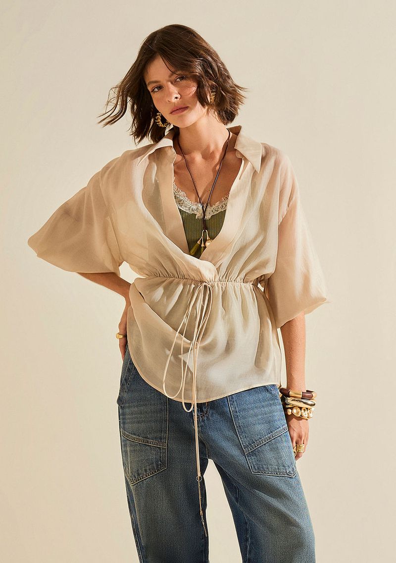 A Blusa Morena Rosa Solta Decote Transpassado Manga 7 Oitavos em Padrão Bege é a expressão perfeita de elegância e versatilidade. Inspirada pelo estilo carioca, esta peça da coleção 'Ela é Carioca!' exala a leveza e a energia vibrante do verão. Feita em voil de alta qualidade, oferece conforto e sofisticação, ideal para mulheres modernas que apreciam um toque brasileiro em suas produções. Com shape solto e mangas 7/8, esta blusa é perfeita para ocasiões casuais, podendo ser combinada com uma calça cargo para um look despojado ou skinny para um visual mais elegante. Complementos como colares ou brincos discretos podem enriquecer ainda mais seu estilo. Sinta-se poderosa e autêntica com essa peça que valoriza sua essência e te faz brilhar onde quer que vá. *Os acessórios não acompanham a peça.*
