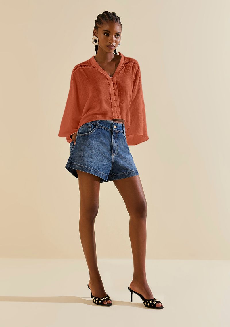 Blusa Morena Rosa Solta Decote V Manga 3 Quartos Padrão Marrom