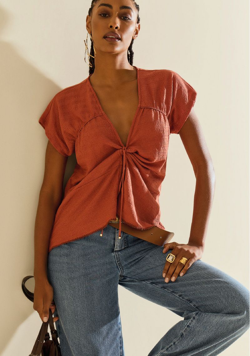 Surpreenda-se com a Blusa Morena Rosa Solta Decote V Manga Curta Padrão Marrom, um ícone de versatilidade e sofisticação. Com um design amplo e decote em V, essa peça traduz a essência do verão brasileiro, inspirada pelo calor e vibração de Pernambuco. Ideal para compor looks casuais, ela pode ser combinada com calças skinny ou cargo, além de acessórios dourados que destacam ainda mais sua beleza. Confeccionada com cuidado e precisão, essa blusa reflete a modernidade e o charme da mulher Morena Rosa, que busca elegância e confiança em todas as ocasiões. A coleção Recife traz essa peça única, perfeita para momentos inesquecíveis, seja em um jantar especial ou em um encontro casual com amigos. *Os acessórios não acompanham a peça.*
