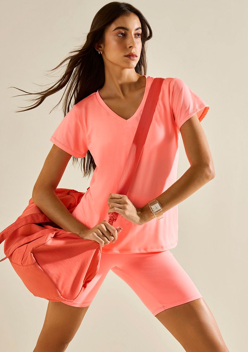 Blusa Morena Rosa Solta Decote V Manga Curta Padrão Rosa: Uma peça irresistível da coleção 'Ela é Carioca!' que captura a essência vibrante e descontraída do Rio de Janeiro. Ideal para quem busca conforto e estilo, sua modelagem solta e o decote em V garantem um visual leve e sofisticado. Feita com materiais de alta qualidade, abraça o corpo proporcionando uma sensação térmica ideal. Perfeita para atividades físicas ou um passeio descontraído, combina com calças skinny ou saias fluidas, e é um convite ao glamour e à confiança. A escolha certa para a mulher moderna que não abre mão de sua brasilidade. Acessórios não acompanham as peças.