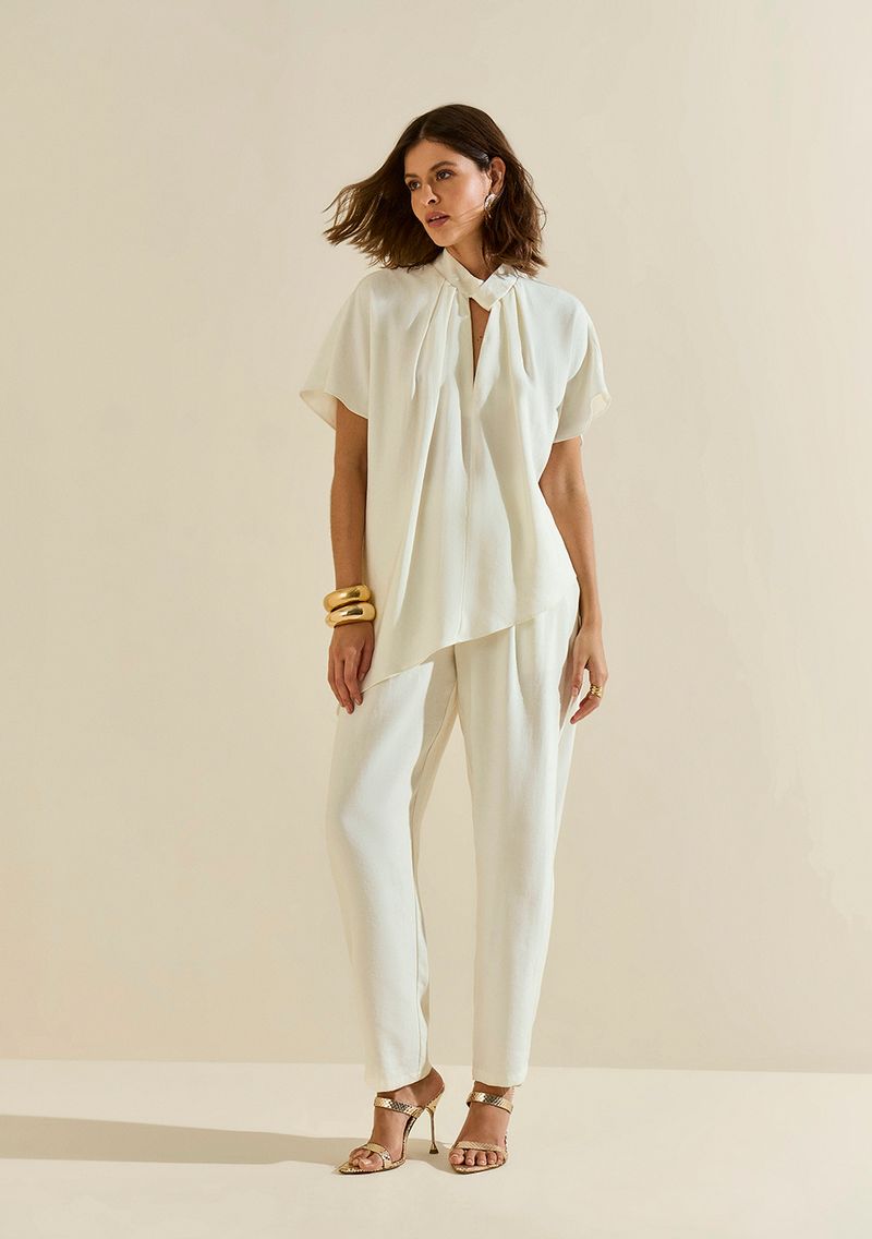 LinhasColeçõesRoupasBlusasBlusasBlusa Morena Rosa Solta Gola Alta Manga Curta Alongada Off White