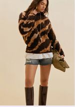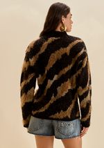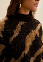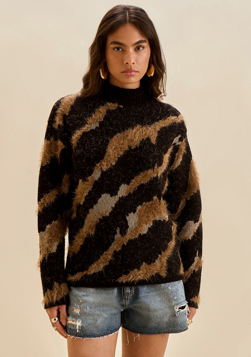 Blusa Morena Rosa Solta Gola Alta Manga Longa Padrão Preto