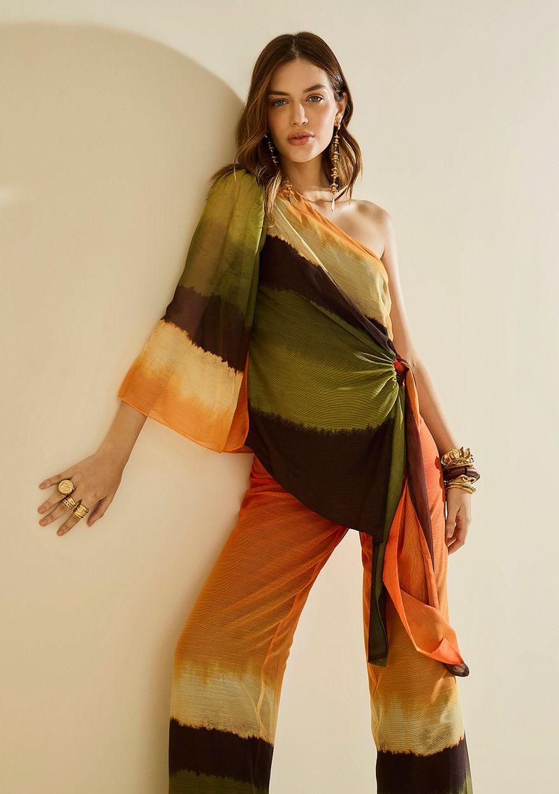 Blusa Morena Rosa Solta Um Ombro Só Manga Longa Alongada Bordo