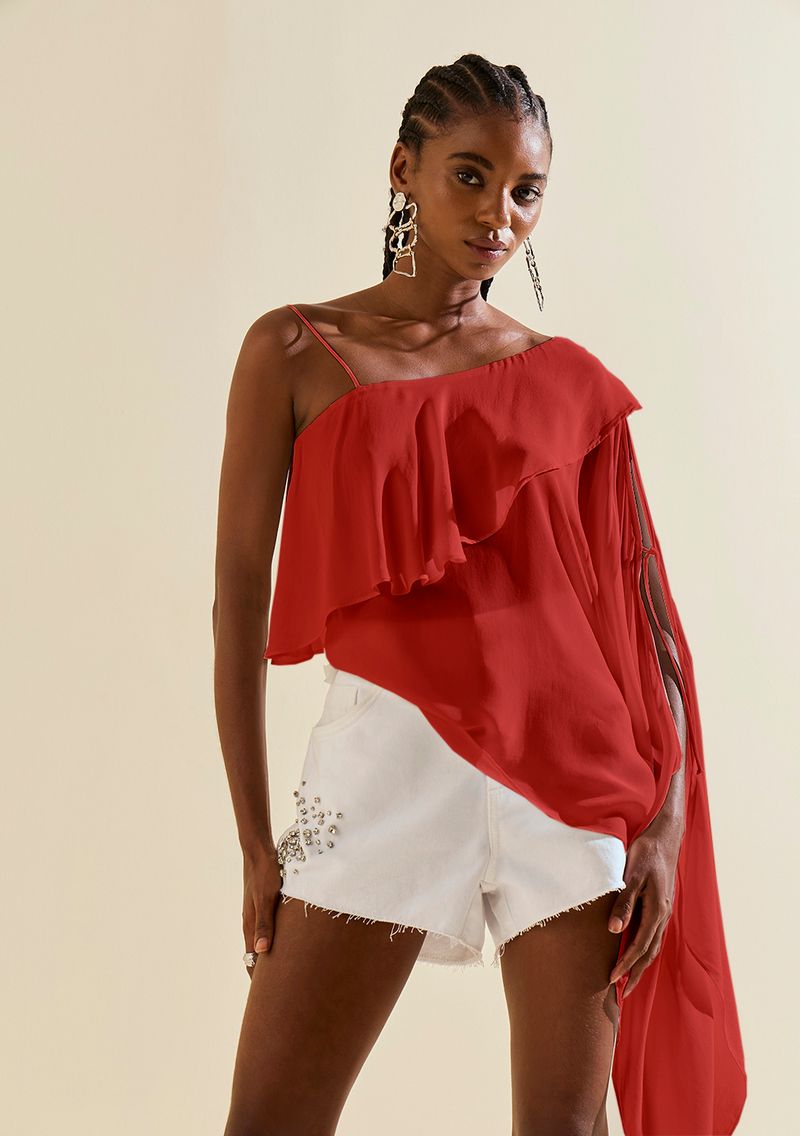 LinhasColeçõesRoupasBlusasBlusasBlusa Morena Rosa Solta Um Ombro Só Sem Alça Alongada Vermelho