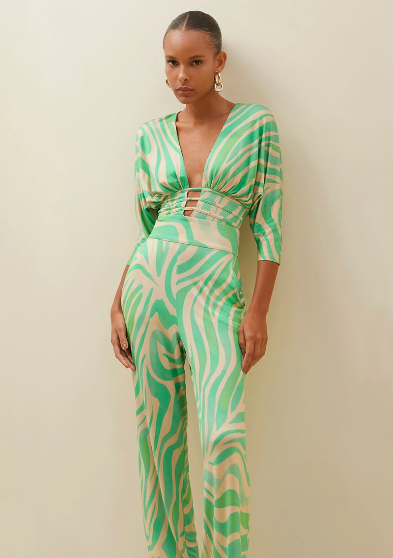 Body Morena Rosa Decote Profundo Manga 7/8 Detalhe Viés Verde