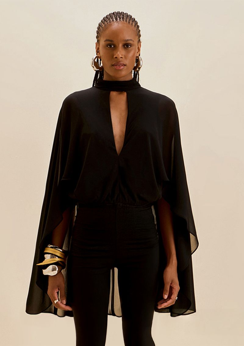 Body Morena Rosa Gola Alta Manga Longa Preto
