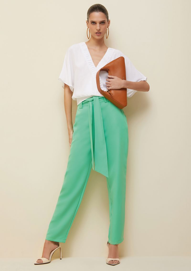 OUTLETLinhasColeçõesRoupasCalçasCalçasCalca Morena Rosa Alfaiataria Cós Alto Com Faixa Verde