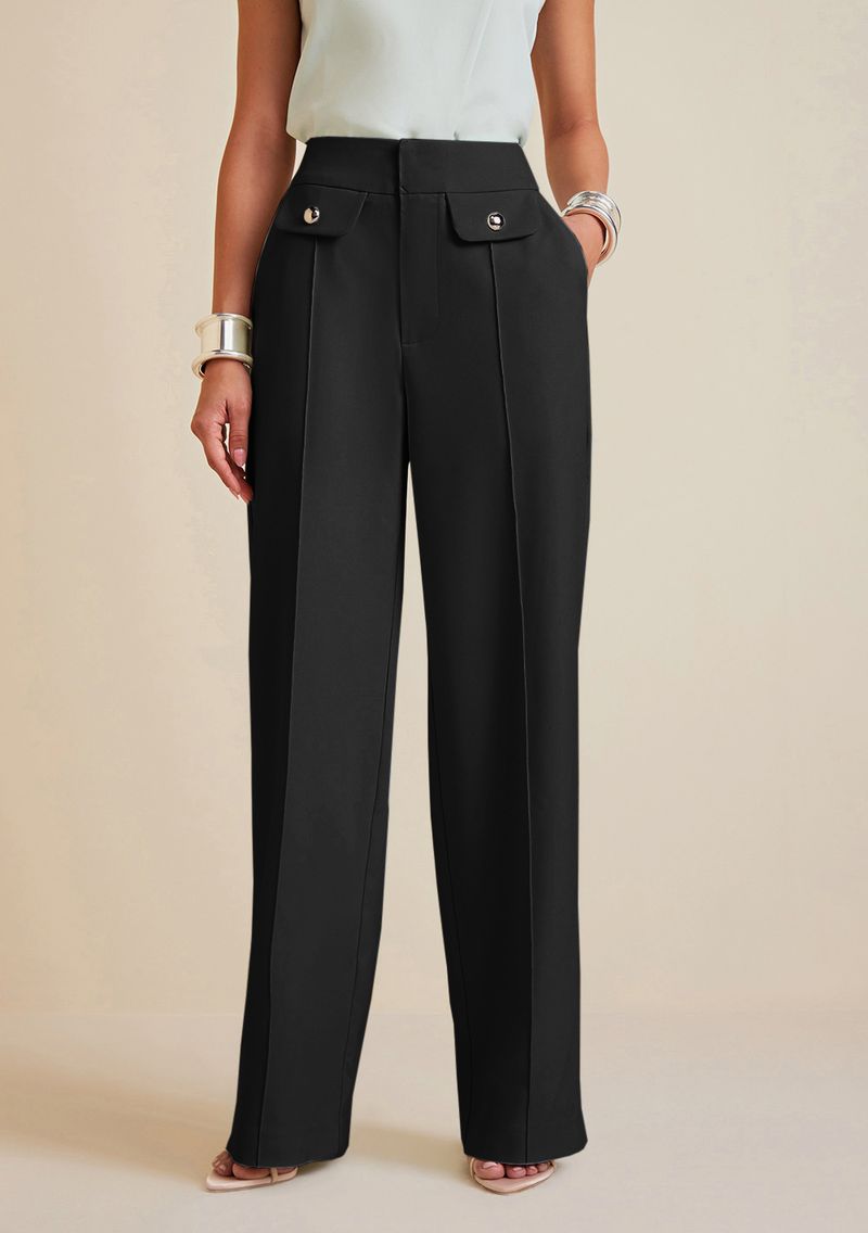 OUTLETLinhasColeçõesRoupasCalçasCalçasCalça Morena Rosa Alfaiataria Cós Alto Com Lapela Preto