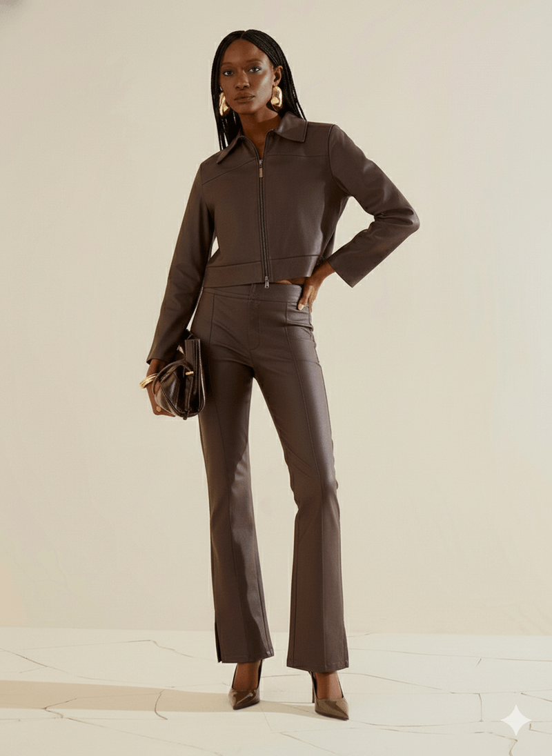 LinhasColeçõesRoupasCalçasCalçasCalça Morena Rosa Boot Cut Alta Marrom
