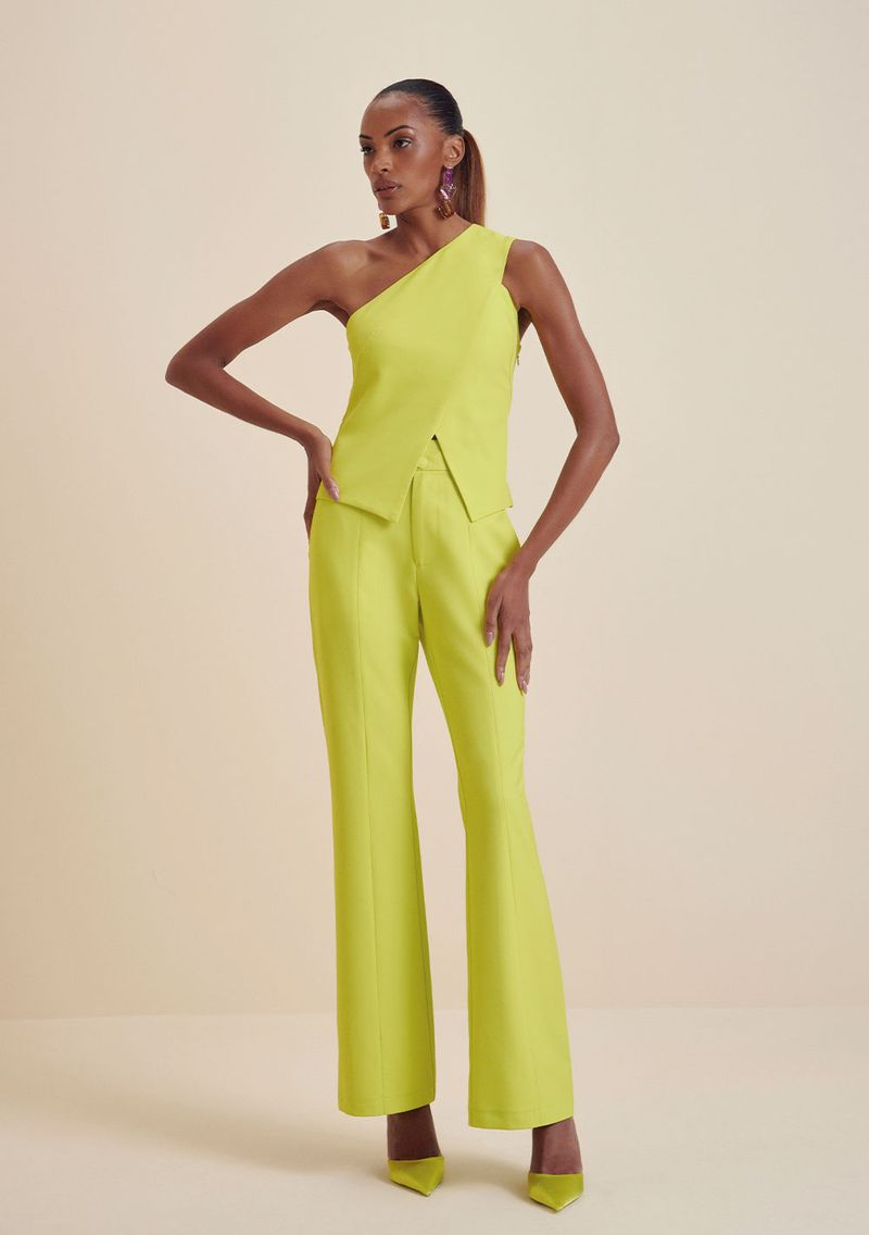 OUTLETLinhasColeçõesRoupasCalçasCalçasCalça Morena Rosa Boot Cut Cós Alfaiataria Bolso Faca Verde