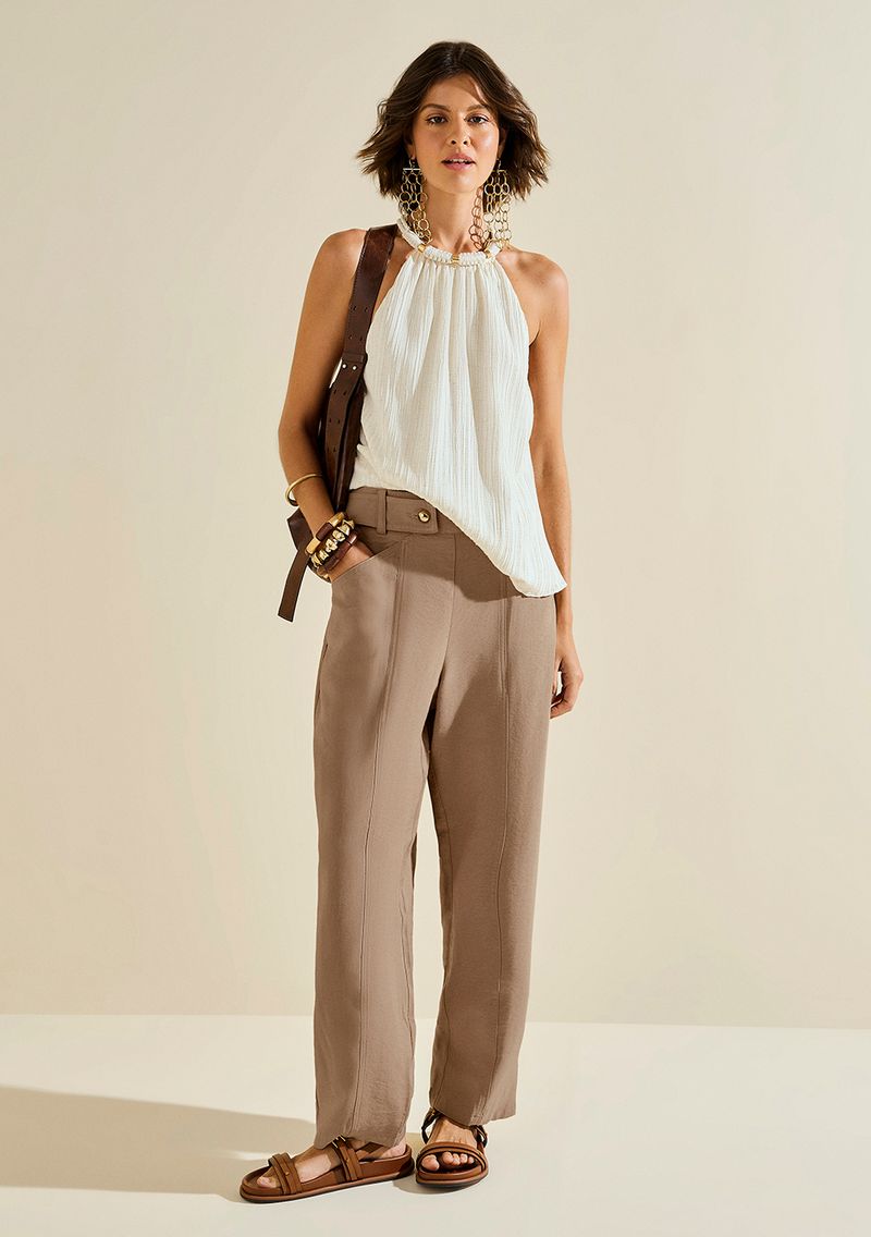 Envolva-se na elegância da Calça Morena Rosa Cenoura Alta Bege, uma peça que exala sofisticação e modernidade com seu corte skinny. Feita majoritariamente de viscose, ela proporciona conforto e leveza, perfeita para os dias de primavera/verão. Inspirada no lifestyle carioca, esta calça é ideal para mulheres que buscam versatilidade e estilo no dia a dia. Combine com uma blusa soltinha e sandálias para um look casual ou com um blazer para ocasiões mais formais. A coleção 'Ela é Carioca!' celebra a essência vibrante da mulher brasileira, convidando-a a brilhar em qualquer cenário. Acesse e transforme sua experiência de moda com peças que valorizam sua feminilidade e autenticidade. *Acessórios não acompanham as peças.